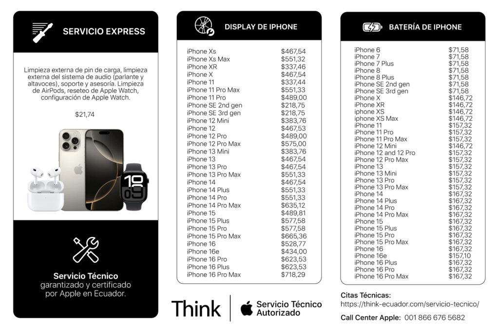 Think ofrece servicio técnico de primer nivel. Nuestros técnicos son certificados y capacitados por Apple para ofrecer la mejor reparación posible a sus productos.