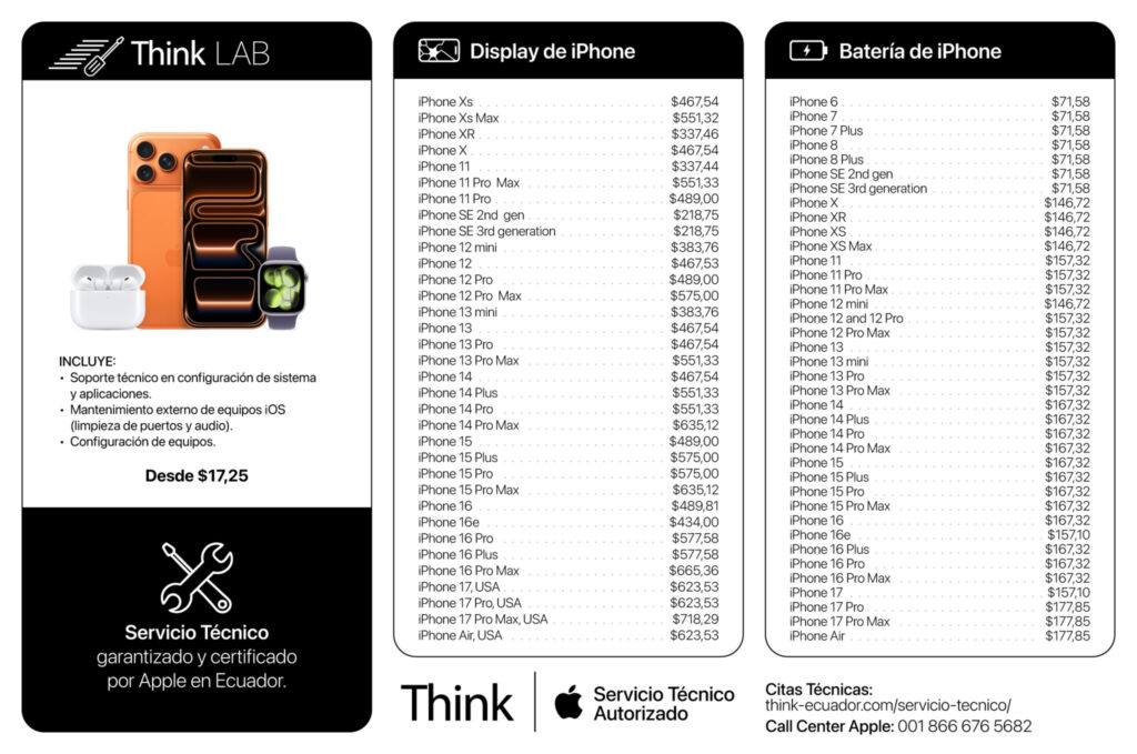 Think ofrece servicio técnico de primer nivel. Nuestros técnicos son certificados y capacitados por Apple para ofrecer la mejor reparación posible a sus productos.