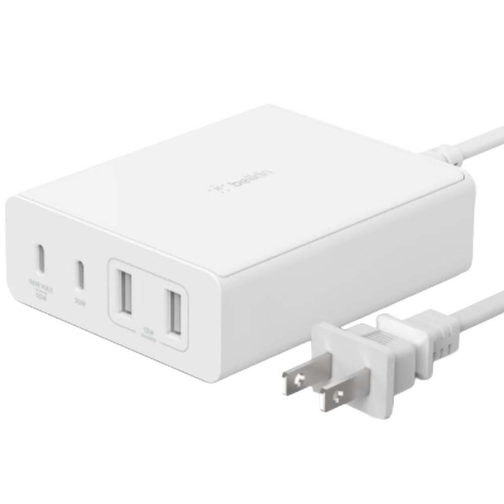 Accede a 2 puertos USB-C y 2 puertos USB-A para cargar una laptop y 3 dispositivos adicionales con nuestro cargador GaN de 4 puertos y 108 W. Incorpora USB-C PD, GaN y otras tecnologías para una carga eficiente y de alta potencia. Diseñado para colocarse sobre un escritorio y facilitar el acceso a los puertos.
