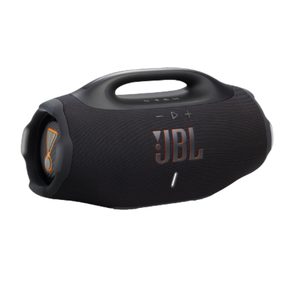 Estamos hablando de un sonido imponente, con graves profundos y muy contundentes. El rediseñado JBL Boombox 4 incorpora dos altavoces más grandes, dos altavoces de agudos y tres radiadores pasivos, para que cada canción suene más fuerte y limpia. Y con AI Sound Boost, no es necesario mover ni un dedo: esta tecnología inteligente analiza la música en tiempo real y ajusta el sonido para ofrecer más potencia con menos distorsión, incluso cuando se sube al máximo.