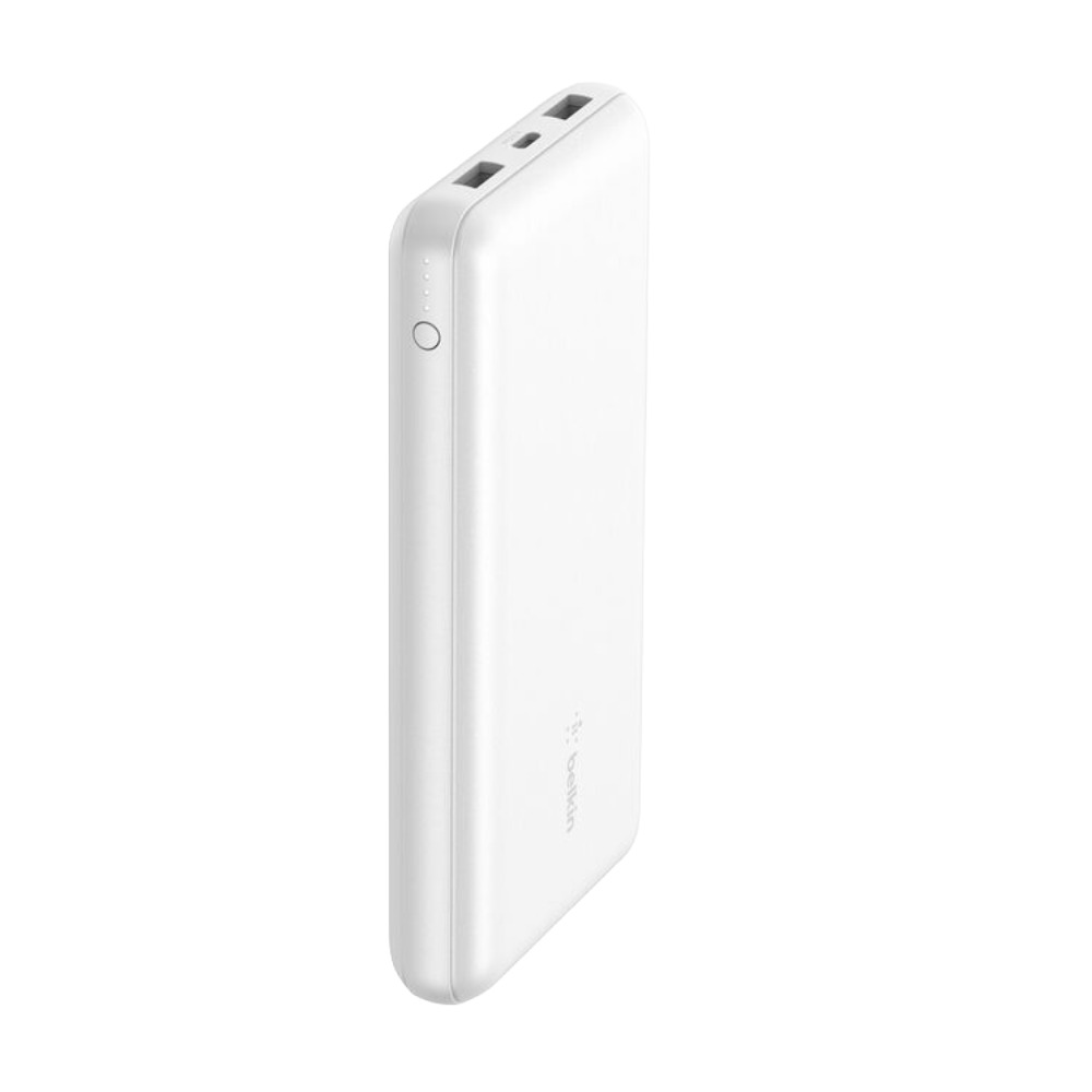 Carga tres dispositivos al mismo tiempo con nuestra batería externa belkin de 20k mah y 15w, blanca